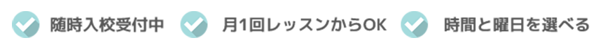 スクール理念「どこよりも質の高いレッスンを、どこよりも安い月謝で」に基づいた一流講師による口コミで評判の個人レッスンは、すべて完全オーダーメイドの個別カリキュラム。それぞれの目的やレベル、やりたいことに合わせて自由にレッスン内容をカスタマイズできるから、初心者の方にはじっくりマイペースなレッスンが、プロ志向の方にはハイレベルなレッスンが可能です。 見学・無料体験レッスン毎日受付中